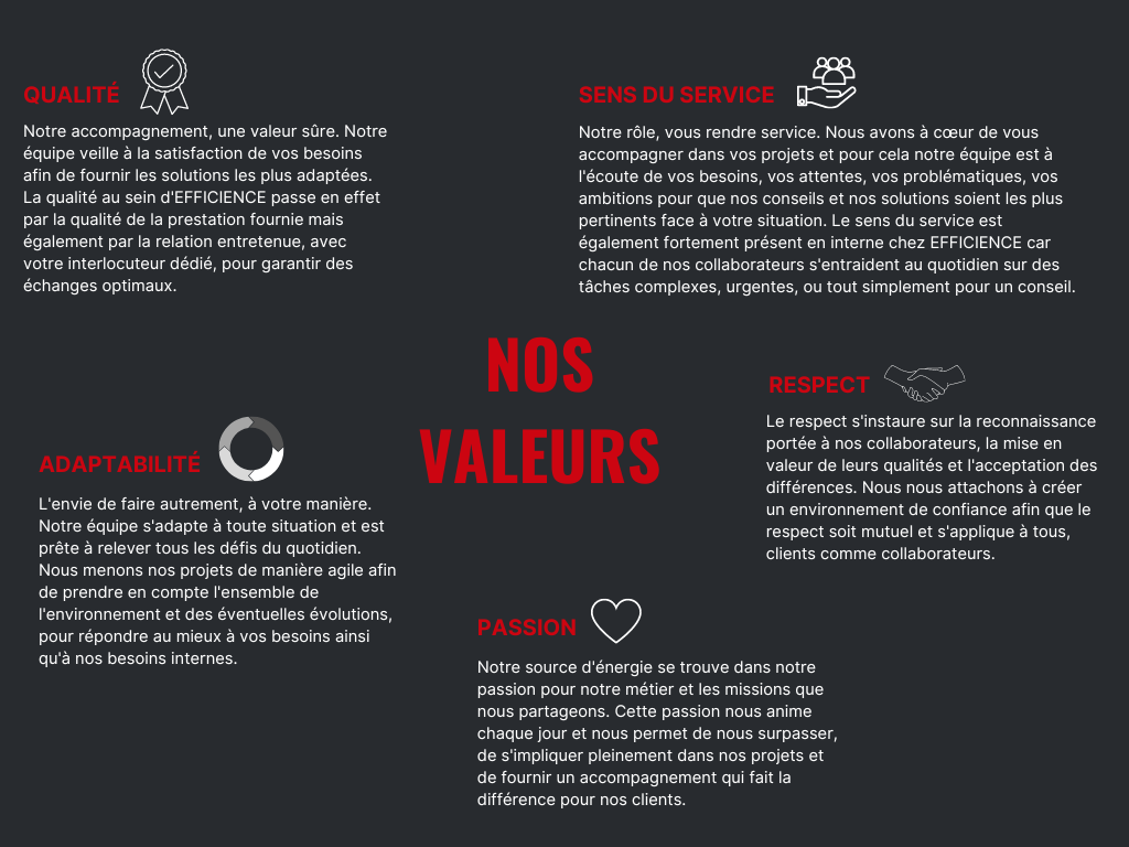 L'équipe EFFICIENCE c'est aussi du dynamisme, de la bonne humeur, de la réactivité et surtout le sens du service !